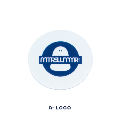 MTSMのシンボルと色んな表情の仲間たちが重なったパターンのアクリルコースター